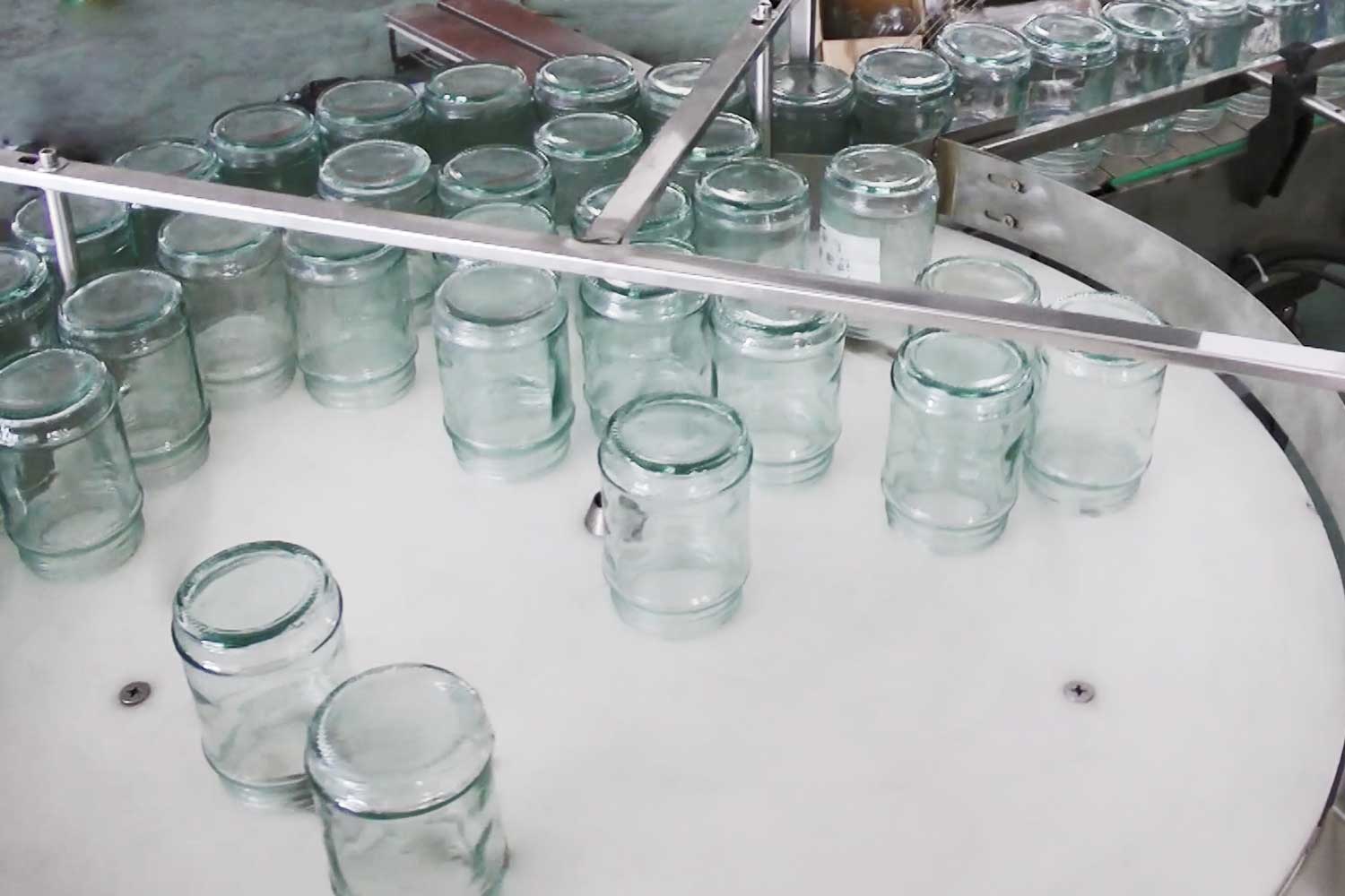 旋蓋機主要用于玻璃廣口瓶的三、四、六鐵蓋真空旋蓋,用兩根不同速度的皮帶壓瓶蓋,因兩根皮帶的速度不同,對蓋進行搓蓋收緊達到旋蓋目的。在自動上蓋之前對瓶口吹蒸汽加熱,吹掉冷空氣,換上高溫蒸汽,立即旋蓋,根據(jù)熱脹冷縮原理,蒸汽冷下來就自然形成了瓶內(nèi)真空,達到了真空旋蓋的目的。自動旋蓋機可以和濃醬灌裝機、蜂蜜灌裝機、辣椒醬灌裝機組合在一起,形成一套全自動灌裝設(shè)備,是現(xiàn)代調(diào)味品企業(yè)的得力幫手。
