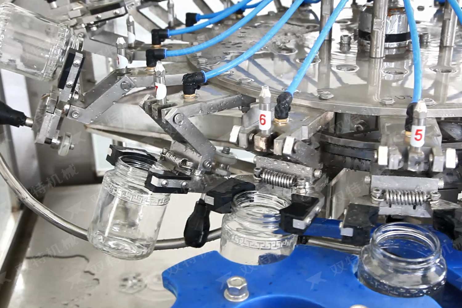 洗瓶機的過程是空瓶進入輸瓶螺桿,由星輪傳動到夾瓶工位,洗瓶的整個過程瓶底均懸空,其優(yōu)點是著力點在瓶頭和頸部,是瓶子厚硬的部分,在清洗過程中不會損傷或壓扁,洗瓶機可調(diào)整多種瓶子,且調(diào)整簡便。