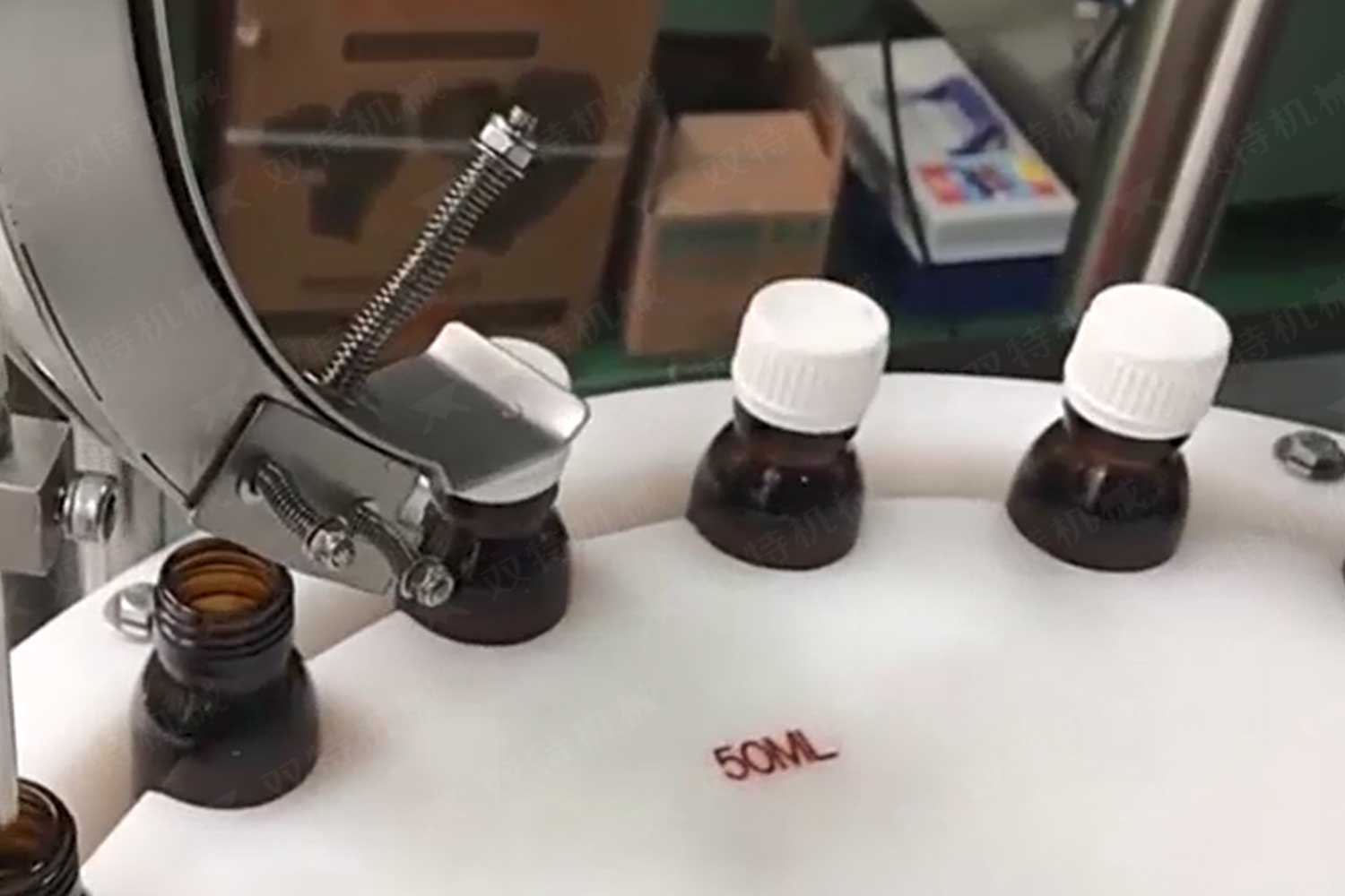 旋蓋機(jī)主要用于玻璃廣口瓶的三、四、六鐵蓋真空旋蓋,用兩根不同速度的皮帶壓瓶蓋,因兩根皮帶的速度不同,對(duì)蓋進(jìn)行搓蓋收緊達(dá)到旋蓋目的。在自動(dòng)上蓋之前對(duì)瓶口吹蒸汽加熱,吹掉冷空氣,換上高溫蒸汽,立即旋蓋,根據(jù)熱脹冷縮原理,蒸汽冷下來就自然形成了瓶?jī)?nèi)真空,達(dá)到了真空旋蓋的目的。自動(dòng)旋蓋機(jī)可以和濃醬灌裝機(jī)、蜂蜜灌裝機(jī)、辣椒醬灌裝機(jī)組合在一起,形成一套全自動(dòng)灌裝設(shè)備,是現(xiàn)代調(diào)味品企業(yè)的得力幫手。